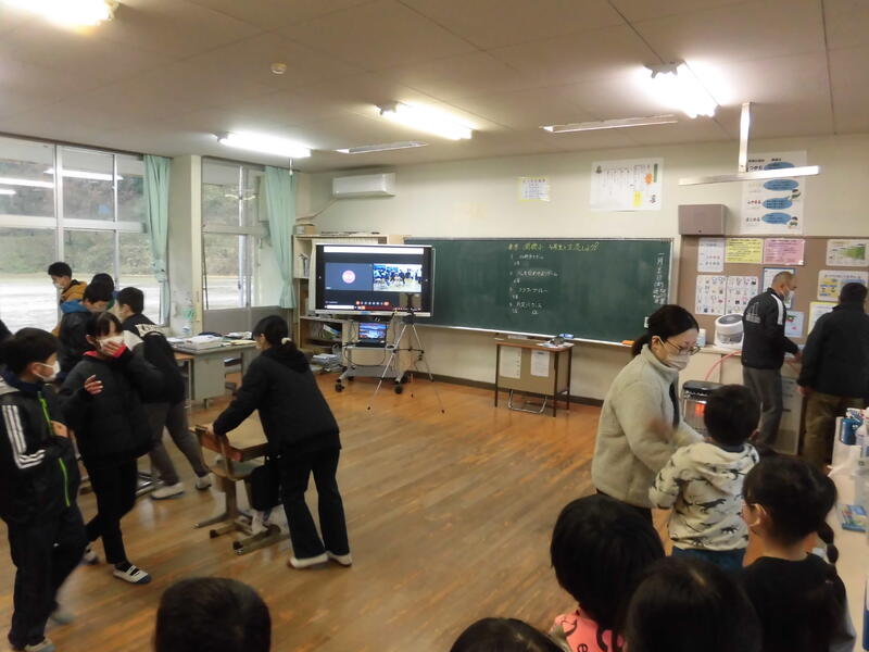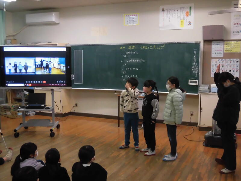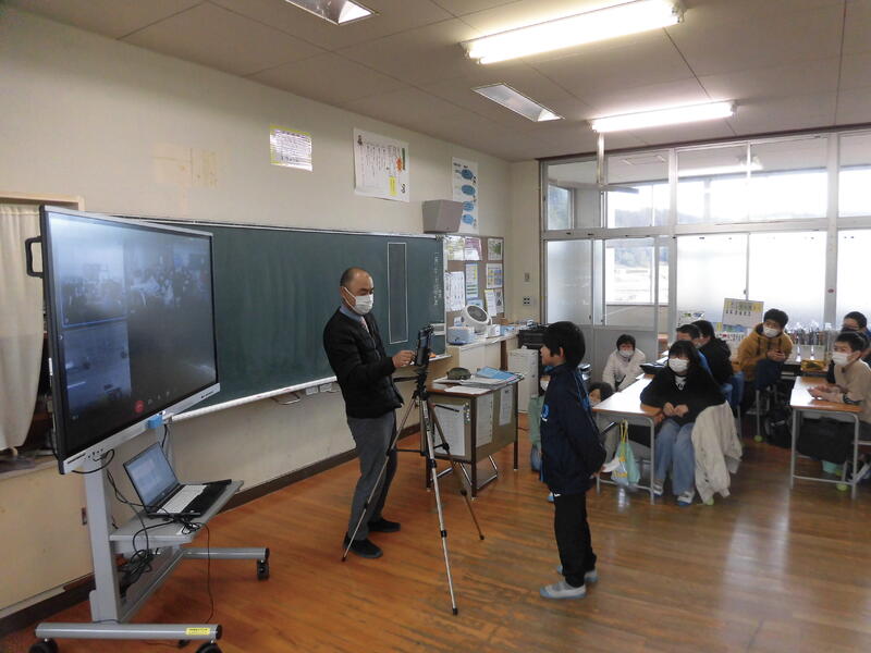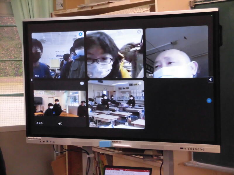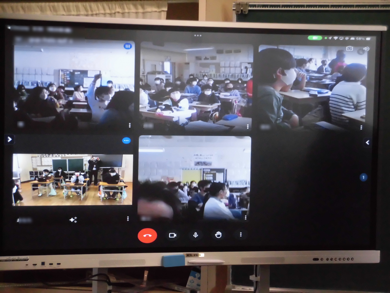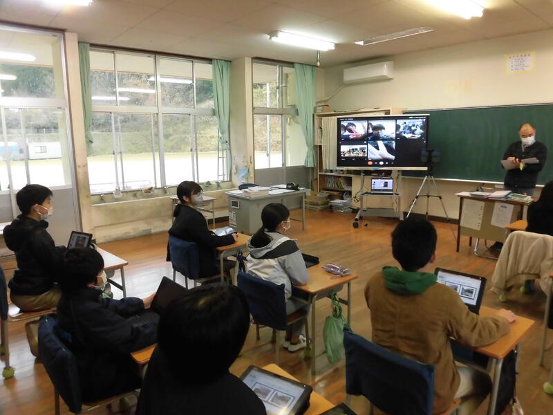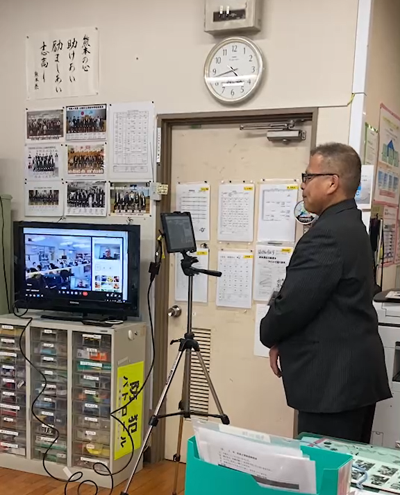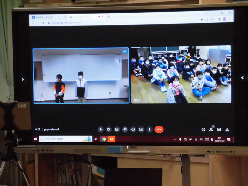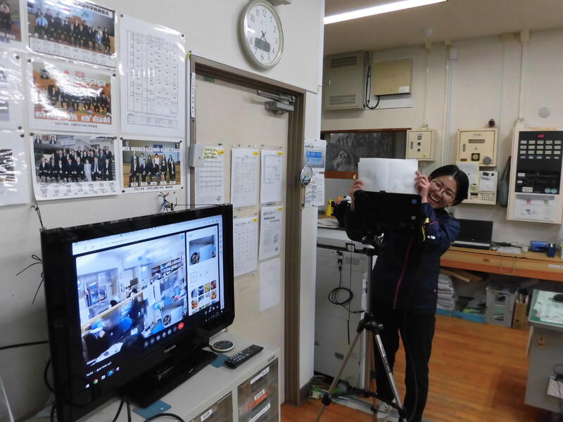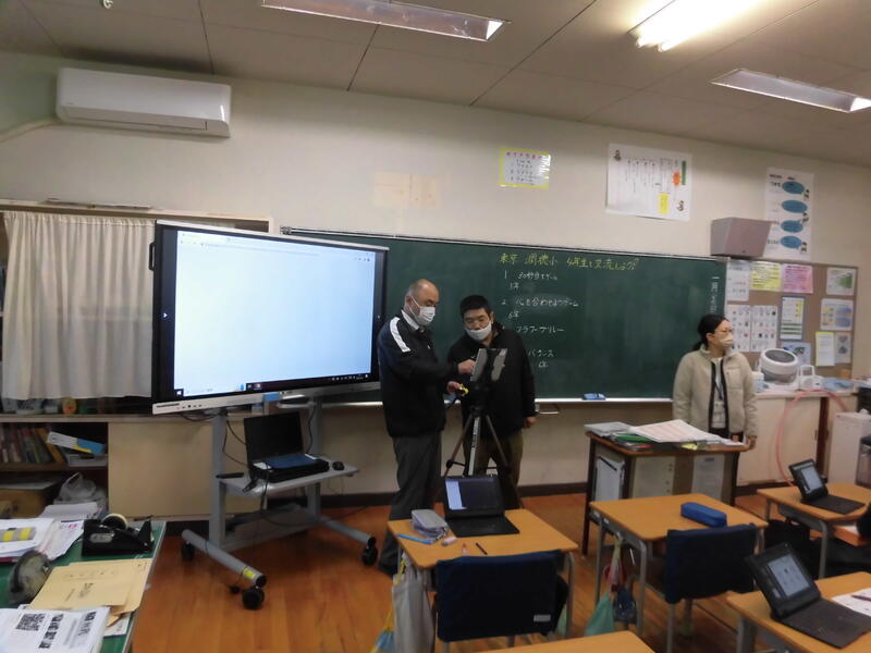 12/14に両潤徳小学校お互いの職員室同士をオンラインでつなぎ、交流をしていたところ、原因不明の回線切れが発生し、最後まで行きつきませんでした。今回はその続きを実施しました。