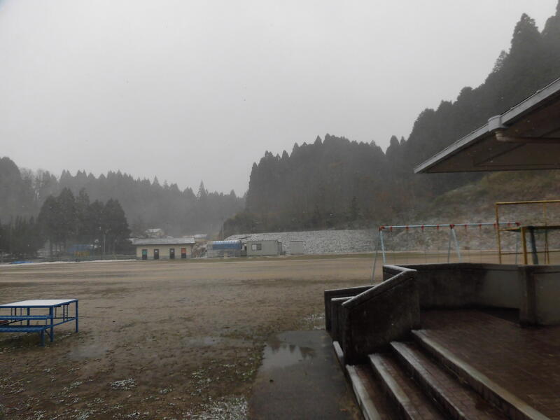 校舎北側の風景です。今日は風が強かったのが特徴で学校はかなり冷え込みました。このあとの積雪を心配して今日は15:30下校を決断しました。今日の夜から明日の朝にかけての降雪および低温による凍結が心配です。