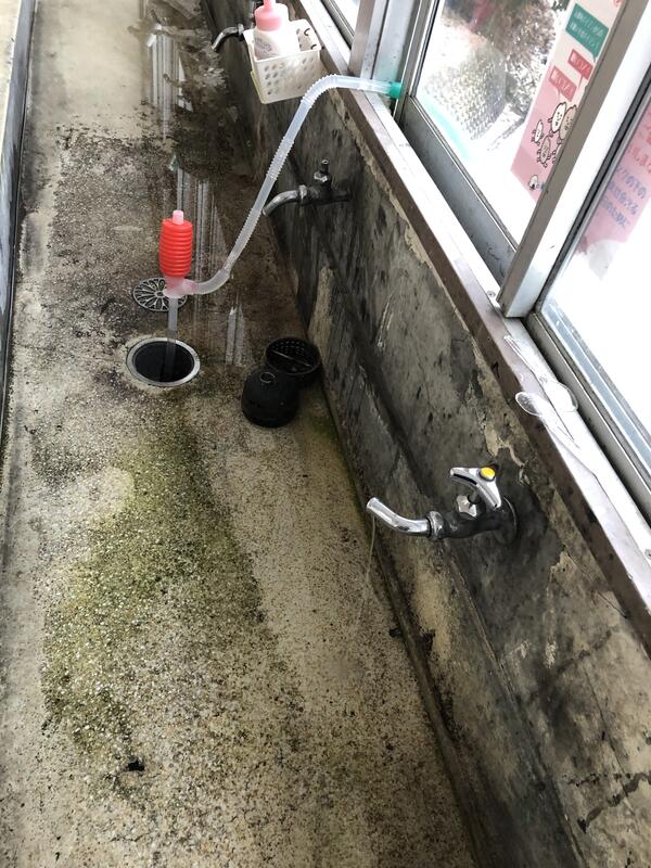 【校舎】朝から2階の手洗い場は水が溜まって流れなくなっていました!ここで今までの知識を生かしました!