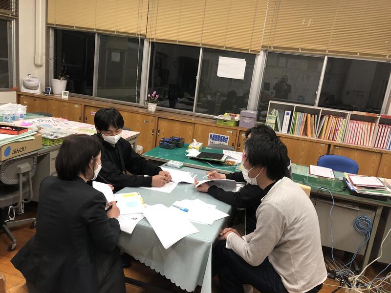 今年は、潤徳小学校のラストイヤー。例年とは違う動きが出てきます。そこで、家庭訪問の合間を縫って担任団が集まり意見交換をしました。