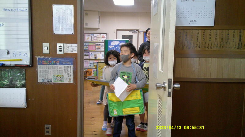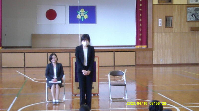 「年度当初ということで、全校朝会で話されませんか」と斉藤校長からお誘いを受けたので、時間をとってお話ししました。今回は校長室からの中継です。2年生以上には顔は知られていますが、1年生は初顔合わせとなります。「本校が3月で閉校すること、だからこそ思い出深い1年にしたい。交流を今年もぜひよろしくお願いします」というような話をしました。