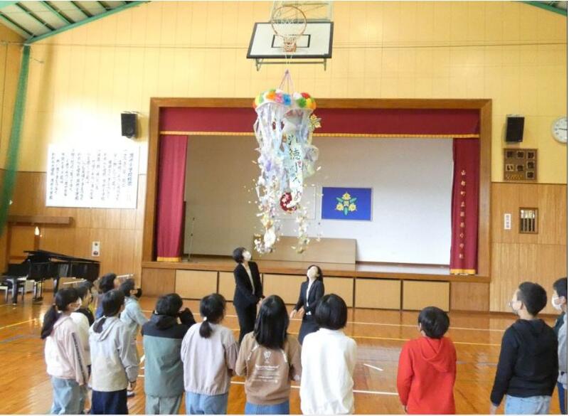 「今日は雨天で通潤橋には行けなかった(この日は歓迎遠足日でもあったため)けど、これも避難訓練のため(体育館を避難所と想定する)だったのではと考えてみてください。今日は与えられた環境で、考え、楽しみましょう」と言って締めくくりました。