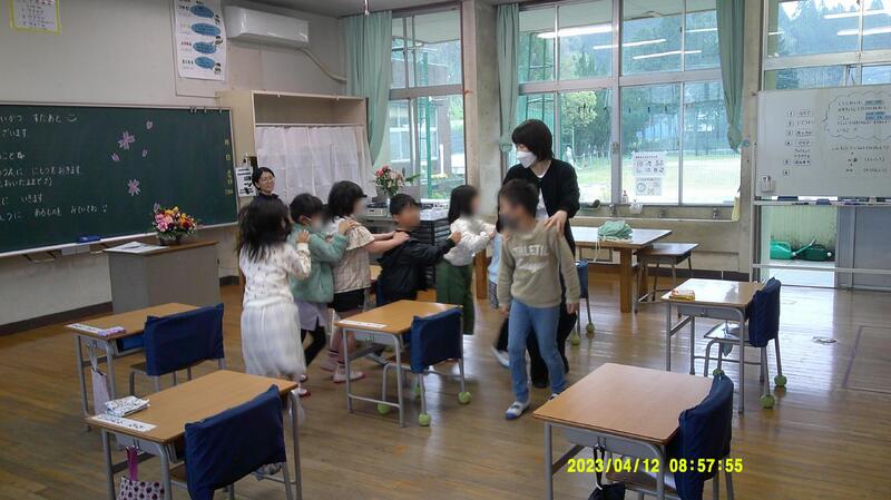 1・2年生 「スタートカリキュラム」を意識した授業びらきでした。私が行ったときは「じゃんけん列車」の真っ最中でした。