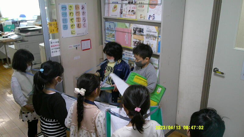 2年生がガイド役・見本役となり、1年生の校内探検がありました。1年生が学校生活をスタートさせるにあたり、「どこに何があるのか」「何と言って入るのか」などを知っておく必要があります。1年間の学校生活を経た2年生がガイド役として、1年生を引率しました。