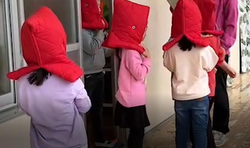 訓練地震放送に合わせてのシェイクアウト訓練の様子