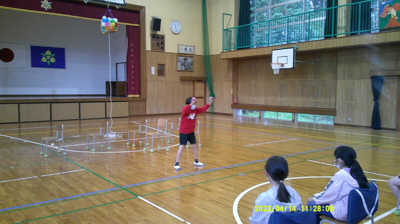 「タイ」で自らの抱負を語られました。また、子どもたちにも「何の・・・たい」をしようと思っているかを問われました。「運動を頑張りたい」など3名の子が発言しました。昨年度まで学級担任をされていただけあって、話がうまいと思いました。