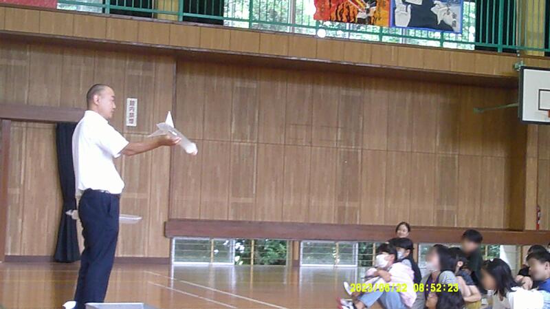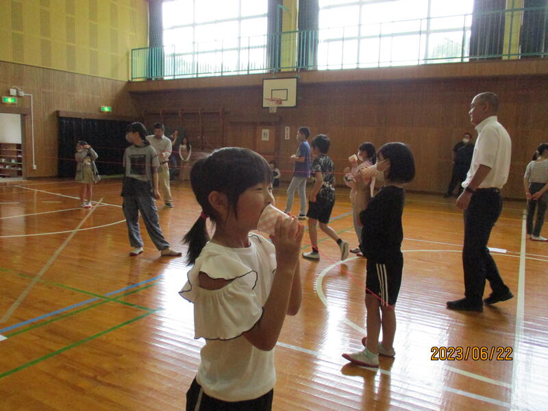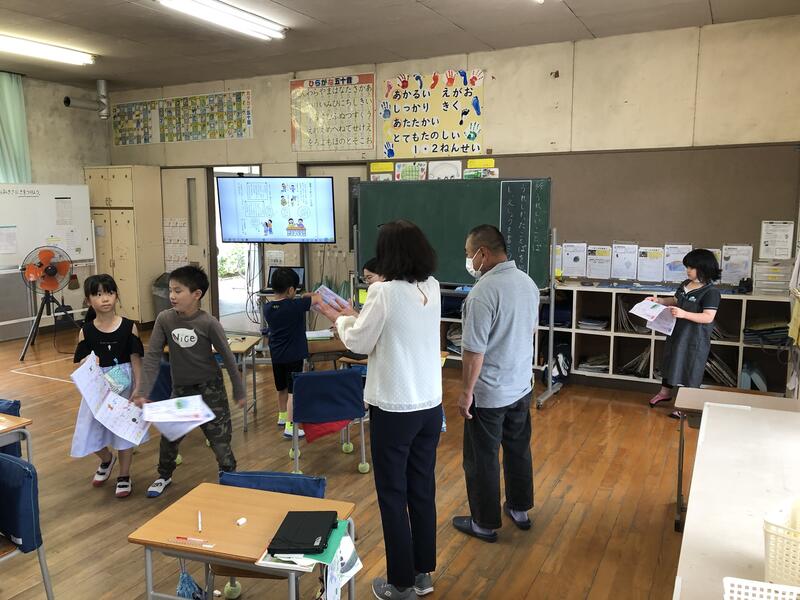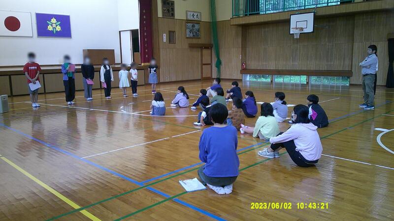 お一人は、本校児童の御祖父さまでした。「普段体験できないことができる学校っていいですね。学年児童だけでなくて全校児童でやれるところもいいですね」と話してくださいました。小規模校には小規模校の良さがあることを再確認できるありがたいメッセージでした(^_^)