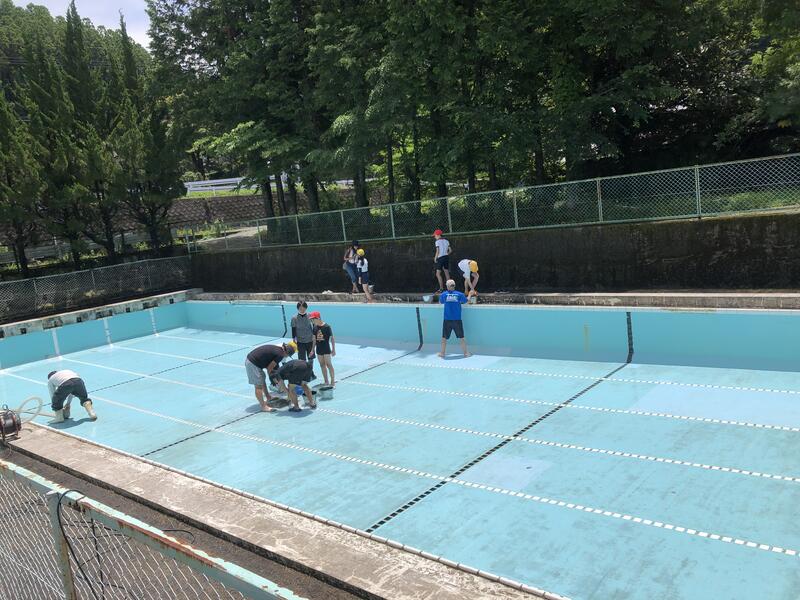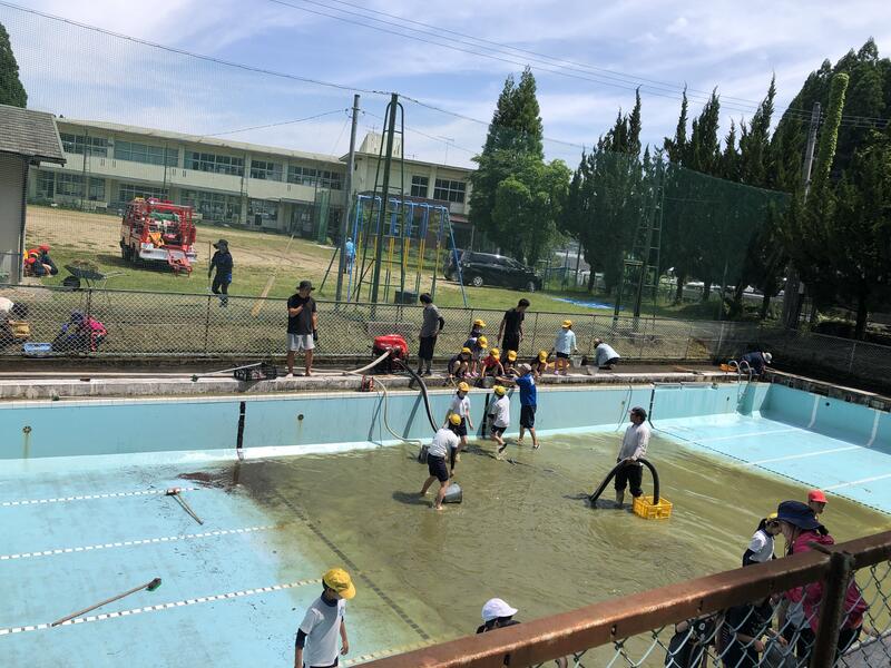 【全校&地域連携】プール掃除を行ないました。そして初の地域連携も!