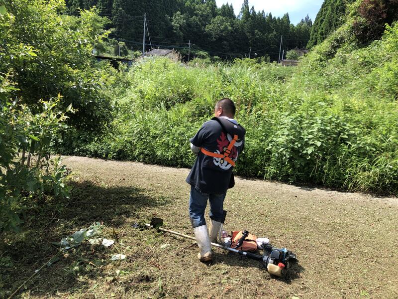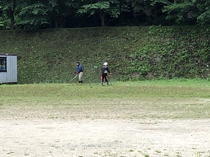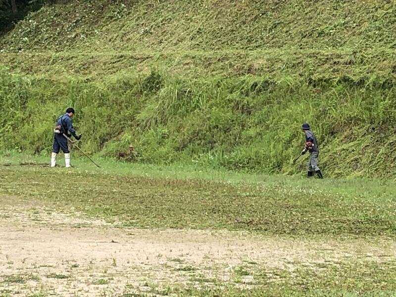 こちらは、斜面の草刈り舞台です。私もこちらで頑張りました。作業事故が起きないように、足場をしっかり確認して行いました。