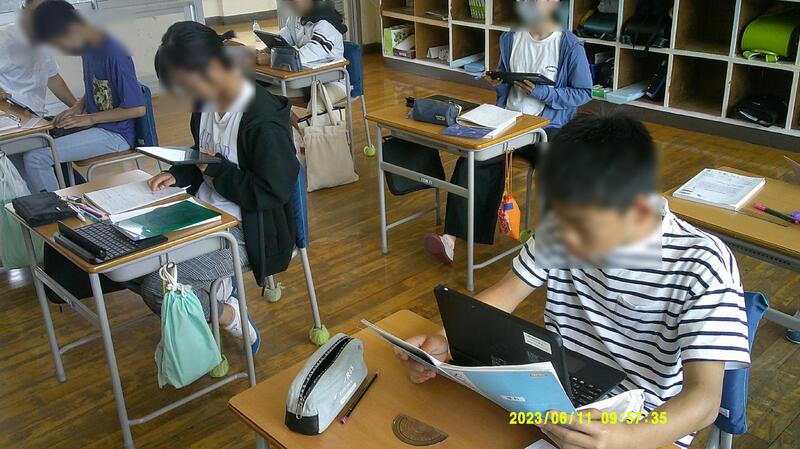自分のノートを指差ししながら自身の説明も入れて録画する方法も考えなければなりません。各自タブレットに向かって自分の説明動画を保存していました。子どもたちは上達が早いです!!