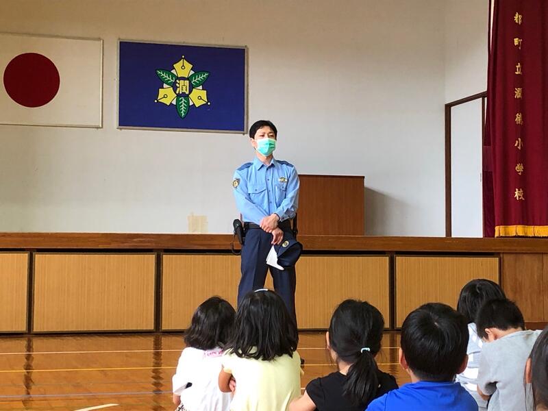 地元、下名連石派出所の八代さんです。子どもたちの避難は、先生の話をよく聞いて行動できていてよかったと評価していただきました。