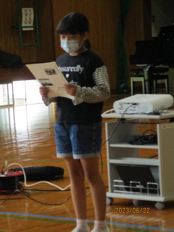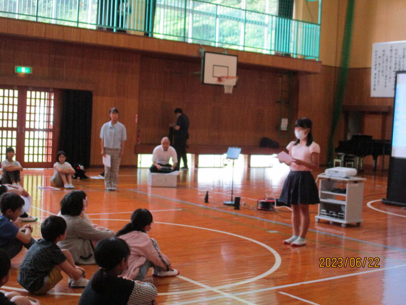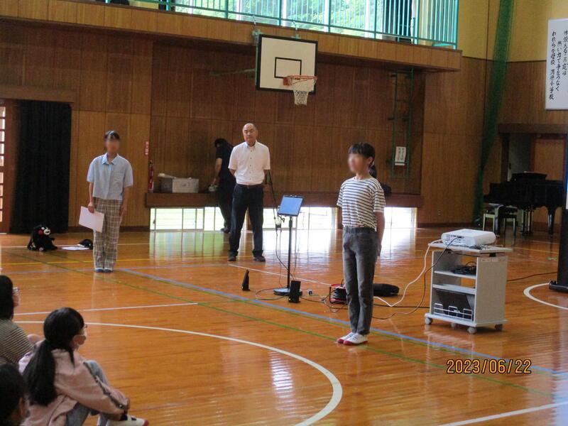 当日の発表内容を本校でも披露し、そのあと参加しての感想が述べられました。集会で多くの学びをしてきたことがよく伝わってきました。