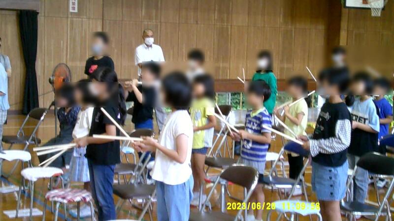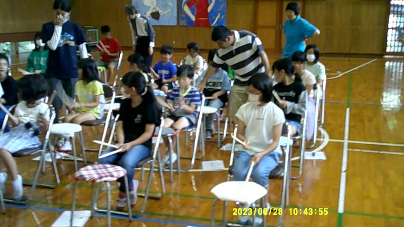 今日は全員にスティックが配られました。実は・・・これだけでも立派な楽器になります。