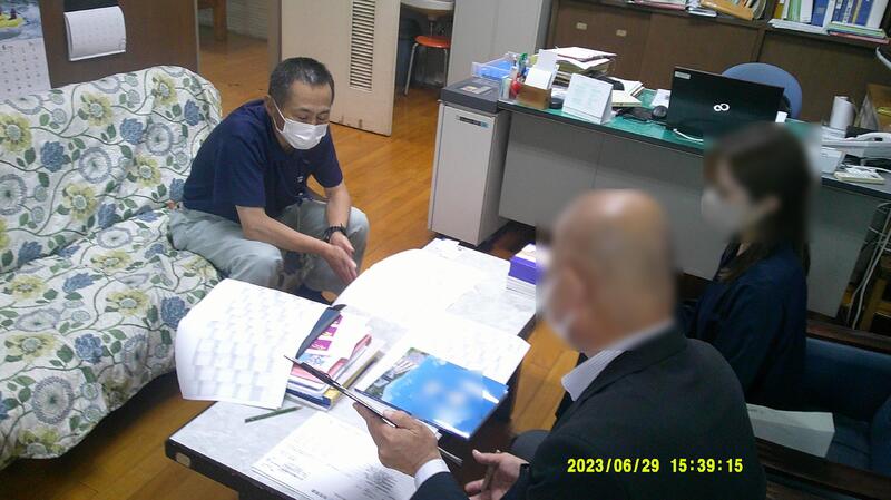 藤原部会長さんにも来校いただき、依頼予定の業者の方と今後のスケジュールについて打ち合わせをしました。