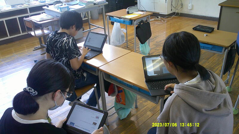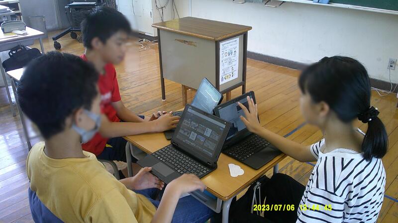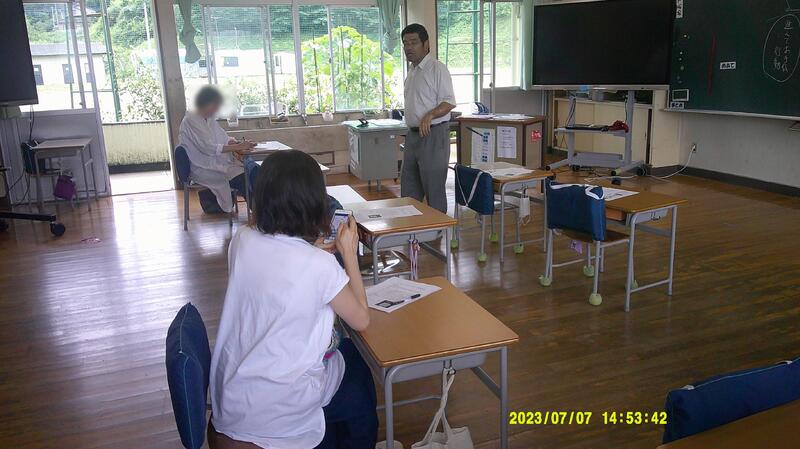 ちょうどこのとき、(山都)はすごい雷雨。カミナリの大きな音がリモートを通じて(日野)にも届き、驚いておられました。一方(日野)は、39度の猛暑。校舎のミストシャワーが稼働していることが先日のHPにも掲載されていました。(日野)ブログはコチラ!! こういった違いを実感できるのも本コラボの醍醐味です!