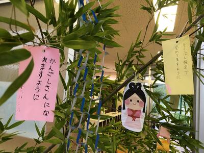 さっそく子どもたちは、短冊にお願い事を書いていました。