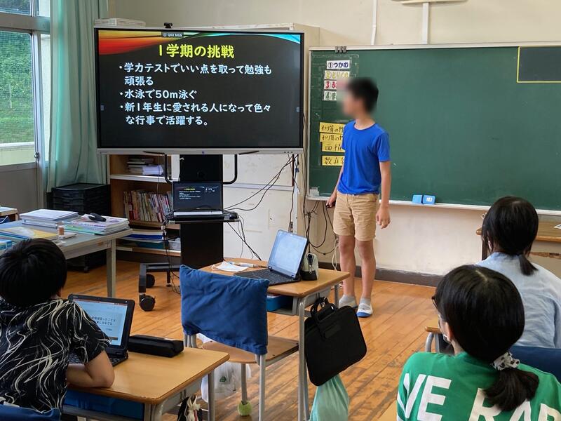 6年生では、1学期の振り返りとして頑張ったことやあまりできなかったこと、夏休みに楽しみにしていることをプレゼンソフトを使って発表しました。