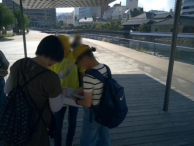 出島内を班別に探索します。