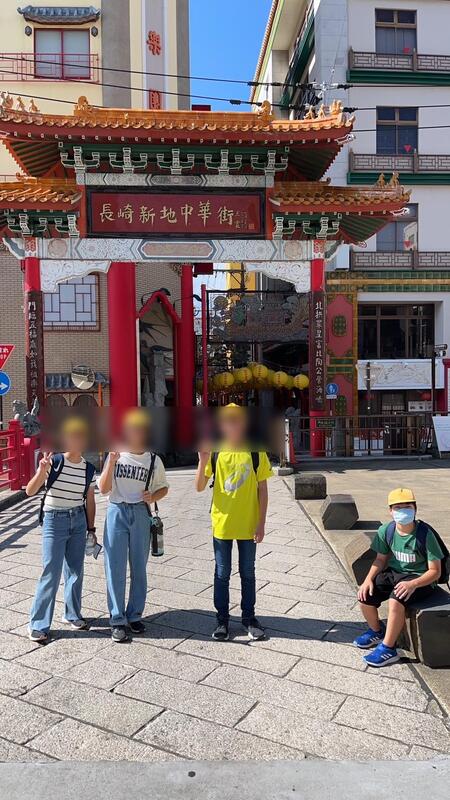 グラバー園で中島小とみんなで記念撮影