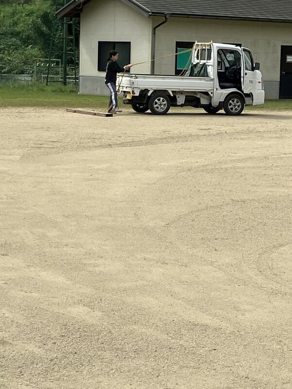 延期になった運動会も9日前を迎えました。そろそろ運動場にラインを引いて練習に入ります。そこで本日の放課後にグラウンド整備をしてライン引きをしようという運びになったのだと思われます。