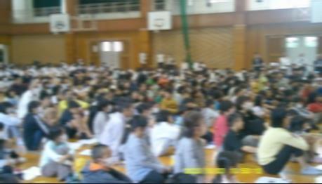 画像をぼかしているのでわかりにくいですが、多くの矢部小の子たちは、顔をこちらに向けて潤徳小の子たちが歌っている様子を見てくれていました。