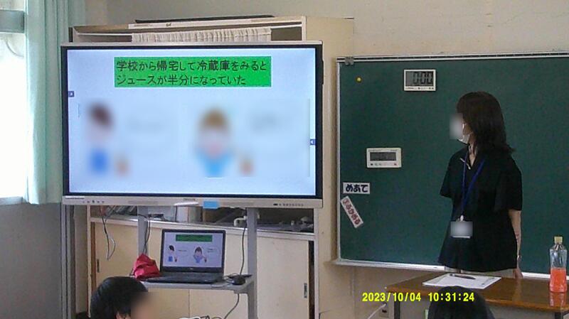 「こんなとき、どう思う?」と子どもたちに問いかけられました。「飲まれてイライラする」「まだ半分残ってるラッキー!」いろんな考えがあります。