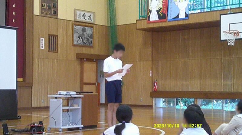 閉会式での感想発表では山都町を代表してEくんが述べました。他校の先生から大絶賛でした!!以下、本人が話した内容を記します。