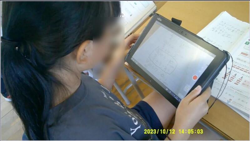 子どもたちは自分たちのゲームの様子をタブレットで確認しています。動画を見てどんなことを工夫してプレイすればよいのかを考えたり、納得したりしている様子がありました。ここでもタブレットは大活躍です。