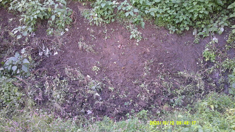 恒例の昼休みウォーキング後に、運動場南側を見に行きました。さらに新しい穴ができています。