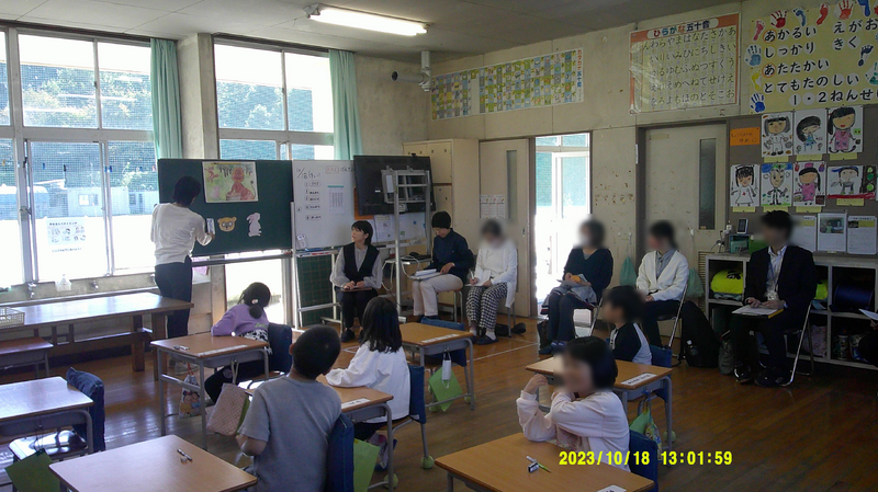 授業後は、授業の反省会を実施し、教材の使い方等について意見交換を行いました。各学校の実践も聴くことができて、今後の授業実践に活かせそうです。森Tは運動会が終わったばかりで大変だったと思いますが、自身の学びにもなったようです。参加された先生方は、少人数のなかで大人数のクラスと間違うくらい子どもたちがたくさん発表していたことにビックリされていました。森Tの日ごろからの指導のたまものですね。