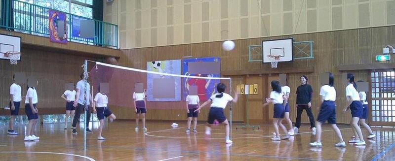 ここまではずっと照明をつけずにやっていましたが、4年生女子がすぐに照明をつけてこちらはビーチバレーが始まりました。1年生・2年生も混じってきました。