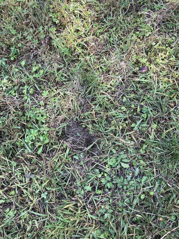 恒例の昼休みウォーキング後に、運動場南側を見に行きました。さらに新しい穴ができています。