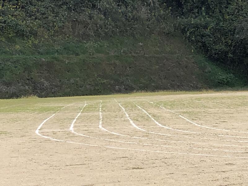 運動場トラックには既に草がたくさん出始めていました。まだ運動会から10日しかたっていないのに・・・。