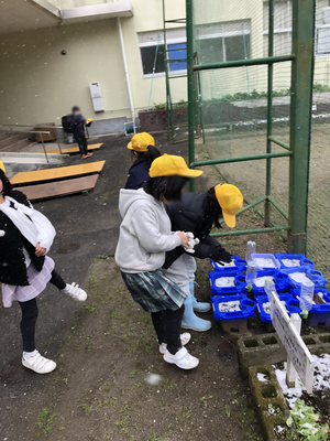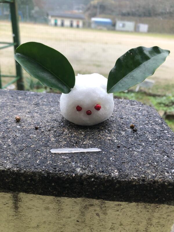 学童のウラできれいな雪を多めに取れましたので、ベランダにいた4年生に渡したら・・・
