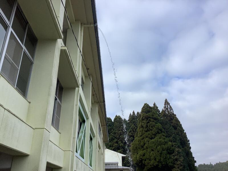 子どもたちが登校しない冬休み、大谷選手のグローブはいつ届くのかなぁと話していた時のことです。職員室から見える窓の外に突然、滝のようなものが現れました。