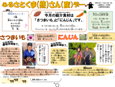 「秋のいろどりいため」は、初めて食べる料理でしたが、とってもおいしかったです。3、4年生もよく食べていました。