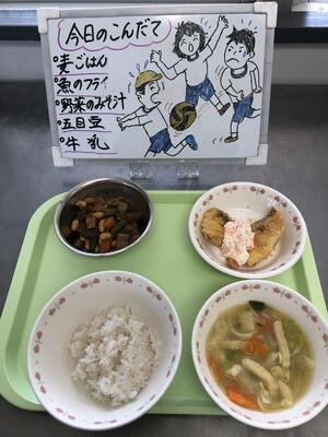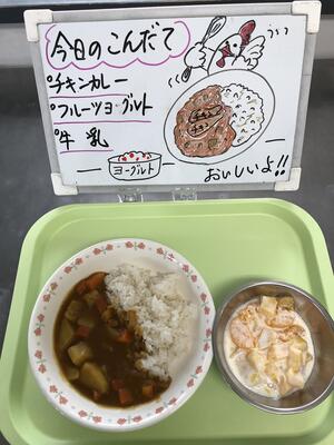 今日は、早めの11時10分から給食でした。においに誘われて、2年生が「やった!カレーだ!!」と歓声をあげていました。小学校のカレーライスは、どうしてこんなにおいしいのでしょうね。