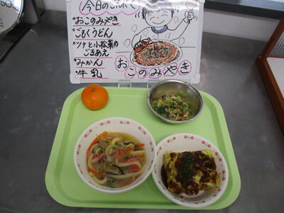 今日は、ソースたっぷりのお好み焼きでした。
