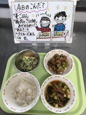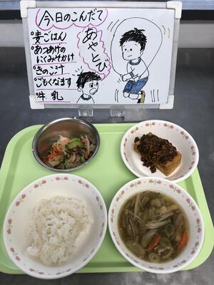 今日の献立の注目は、「あつあげの肉みそかけ」です。