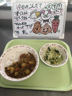 金曜日の今日、潤徳小でもカレーライスが登場しました。