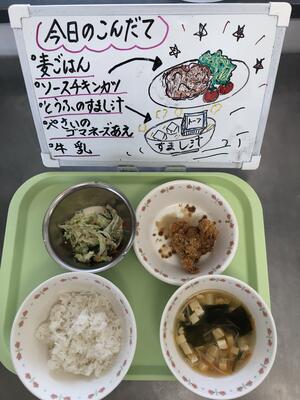給食にはめずらしい「チキンカツ」が登場。ごはんがすすんで、おいしかったです。