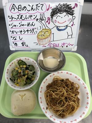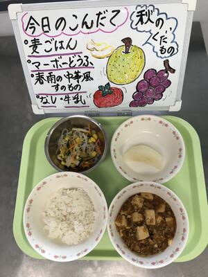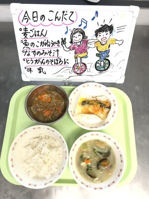 訂正:給食通信には、今日のメニューに「あんにんフルーツ」と書いてありますが、今日はありません。