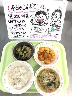献立では、「ごぼうのあげからめ」がおいしかったです。