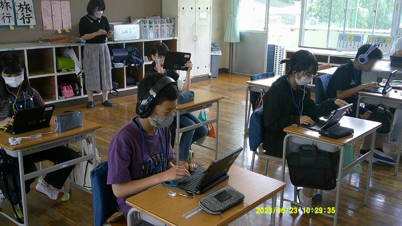 特別授業2時間目となりました。今回は、周りの音を気にしなくていいように各自イヤホンかヘッドフォンを持参しました。