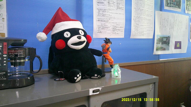 ちなみに、校長室のくまモンもこの季節、下写真のようにお色直しして、いつも私(学校)を見守ってくれています笑笑。