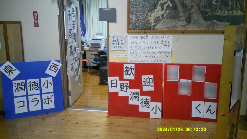 どこが映っているのかがわかるように、山都潤徳小の証であるのぼり旗や、「東西潤徳小コラボ」表示を付け加えました。