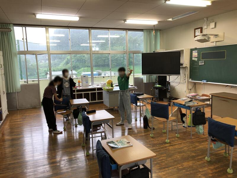 (写真↑)子どもたちが近くの人と意見交換している様子(写真↑)反射して見づらいですがモニターには私の姿が写っています。