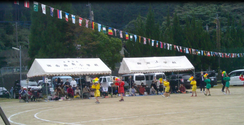 くまモン体操の歌詞の後半には、「みんなの住むまちの紹介を歌詞にしてうたってね」というカラオケの部分がありますが、今回はこの部分を校長が本部放送席のマイクを手に取って、カラオケで以下の歌詞をつけて披露しました笑笑