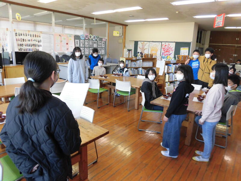 3年生は、せっかく授業参観に来られているということで「私たちの学校自慢」発表を授業の最後に入れました。ある班は給食の話題について発表しました。