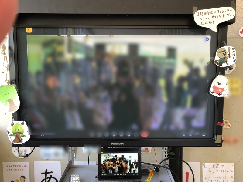 斉藤校長先生から「モニター前に来て頂けますか?」と連絡が入りました。もちろんこれは、改めてつなげなくても、つながっているものを使っちゃえ!精神です笑笑。